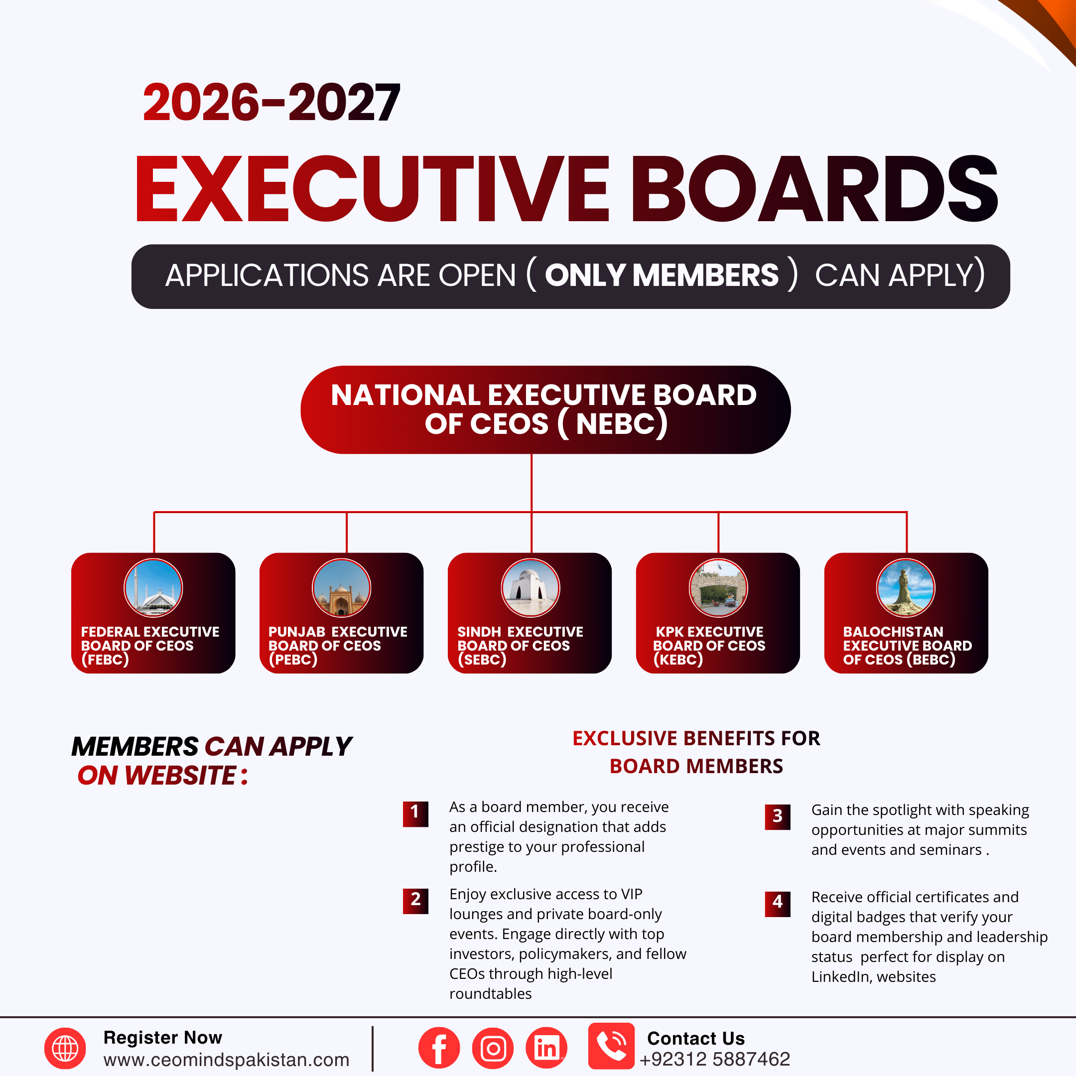 CEO Minds Pakistan operates through CEO Executive Boards, each responsible for driving innovation, networking, and leadership development in their respective territories.